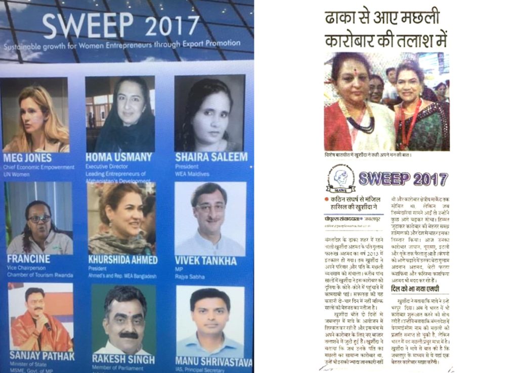 Mrs. Khurshida Ahmed Poly visited many countries under European Union and Asia as business delegates representing Bangladesh and attended number of Seminars/Workshops/Conferences/Symposiums on Trade & Commerce at Home and abroad. She has excellent relationship with the Government Client, business community, expatriates and diplomatic communities in Bangladesh.
